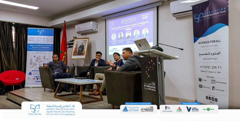 Agadir Smart City Meeting 2023 « ASCM2023 » une des principales activités Sciences Pour Tous, visait, ceci depuis sa première édition 2022,à inviter des acteurs clés, des experts, des décideurs politiques, des professionnels et des parties prenantes impliquées dans le développement des villes intelligentes, en particulier la ville d’Agadir. Fait le 09 juin 2023 à la cité de l'innovation d'Agadir.