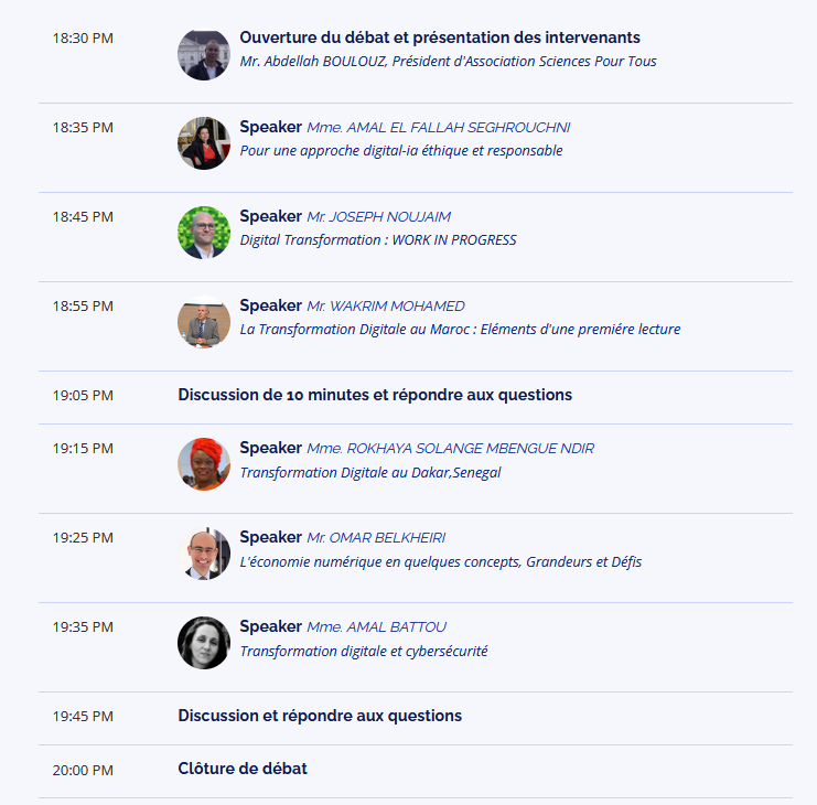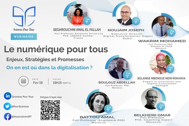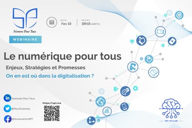 Le Pôle de « Smart cities & digital transformation » de « Sciences Pour Tous » organise donc cette réunion (Webinaire) pour discuter quelques points clés, et bien d’autres, nous permettant ainsi d’avancer dans cette voix de la digitalisation.