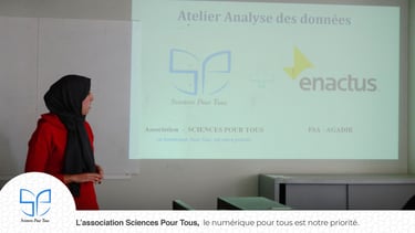 Le pôle IT & Code de l’Association Sciences Pour Tous a aussi organisé un atelier de formation sur « L’Analyse de données avec PYTHON », en partenariat avec le pôle IT Enactus de la FS d'Agadir, le 4 Octobre 2021 à la faculté des sciences IBN ZOHR. Cet atelier a été animé par la formatrice : Professeure SAADI Hanane, chargée de formation à SPT.