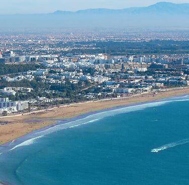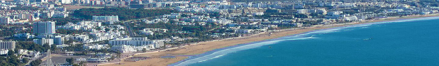 Agadir, située sur la côte atlantique sud-ouest du Maroc, jouit d'un climat doux toute l'année. Fondée en 1505 et reconstruite après un séisme en 1960, elle est aujourd'hui moderne et dynamique. L'économie de notre région repose sur le tourisme, la pêche, l'agriculture, l’industrie agro-alimentaire et le commerce avec des attractions telles que la plage d'Agadir, taghazout Bay, la Kasbah Oufella, le Souk El Had, Souk de la ville d'Inezgane, Parc de Tikiouine, ...